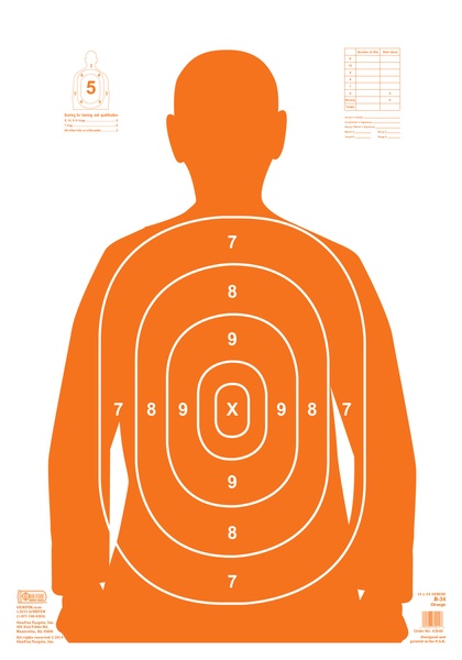 B-34 Orange – a paper shooting target featuring a silhouette with an orange body and a white background.