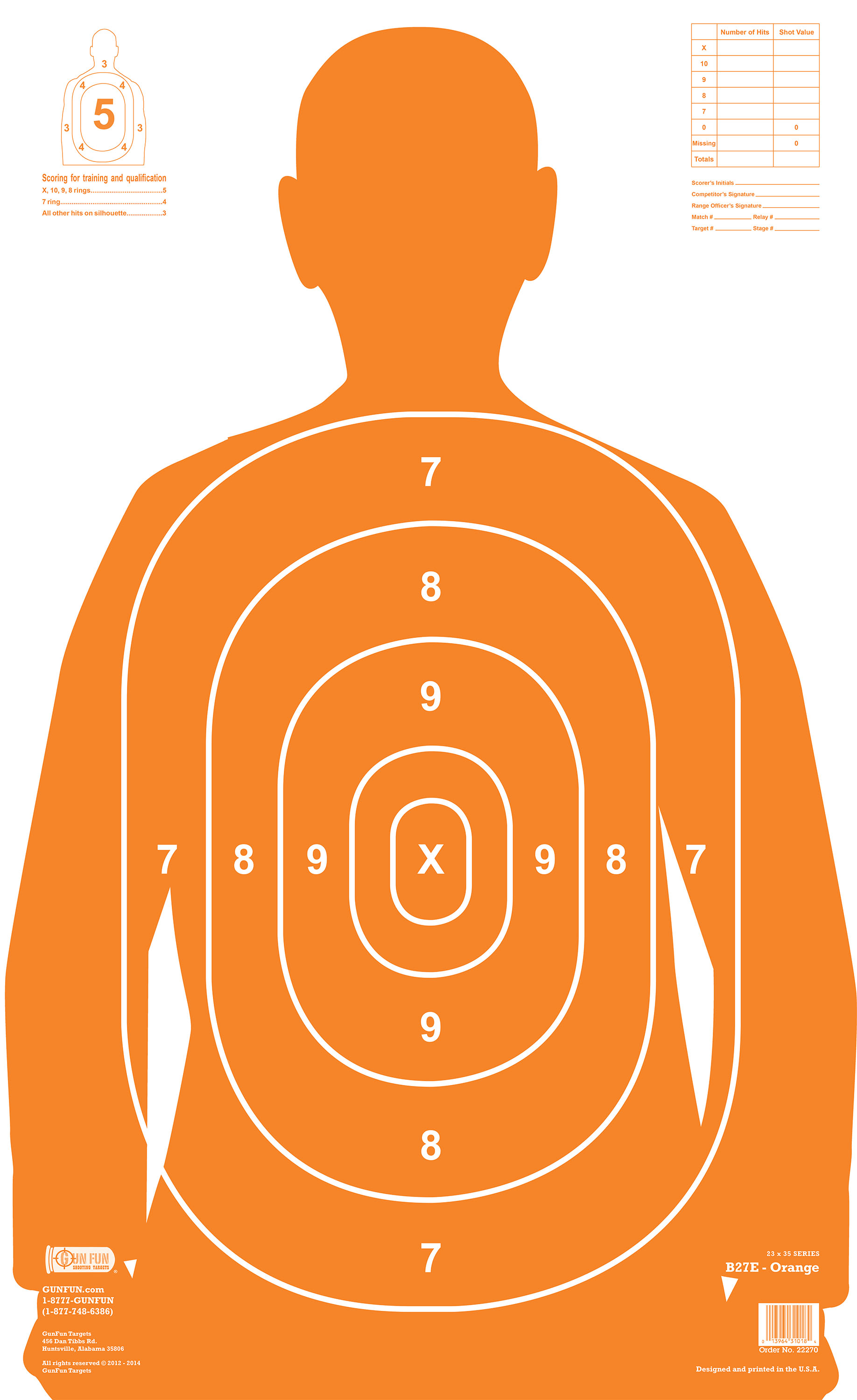 B27E Orange – a paper shooting target featuring a silhouette in orange on a white background.