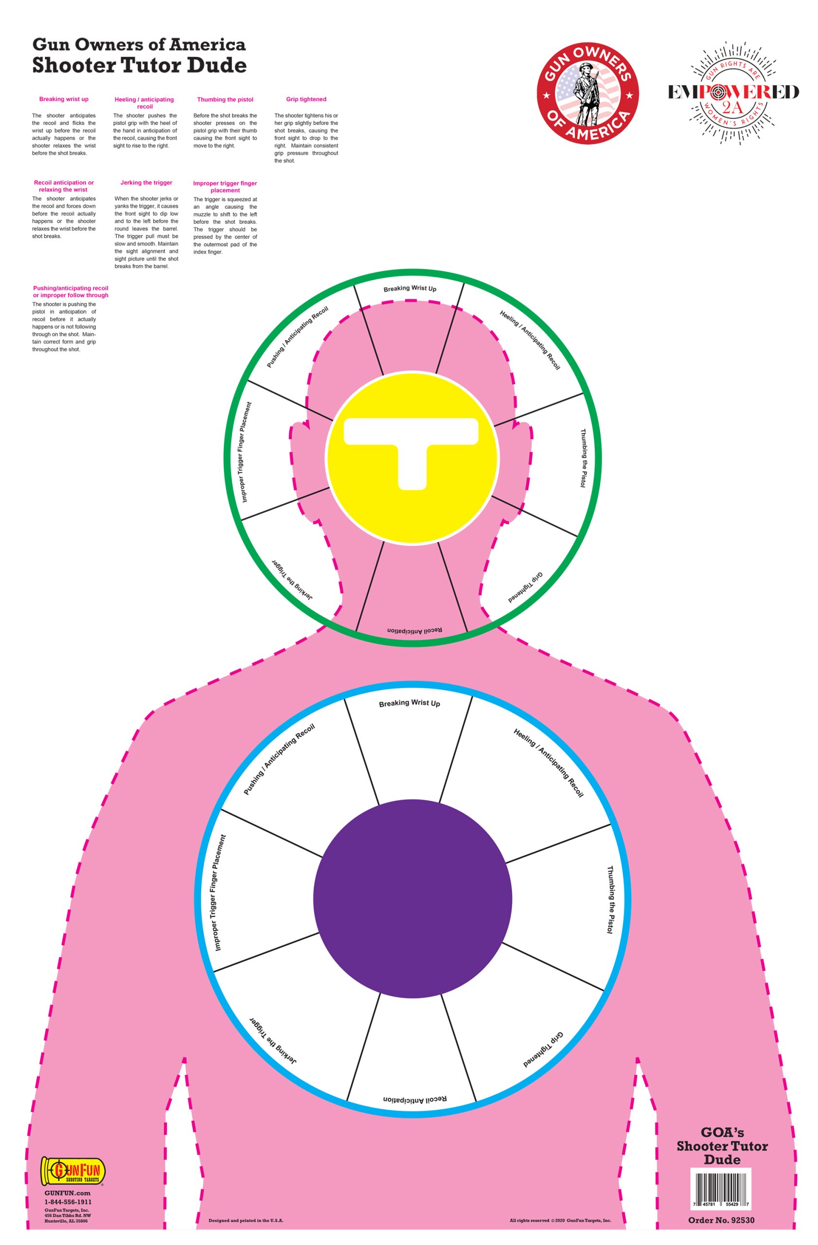 GOA Shooter Tutor Dude– a paper shooting target for Gun Owners of America featuring a silhouette and two diagnostic zones.